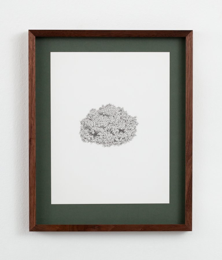 Picea abies 'Mariae-Orffiae', 2016, framed pencil drawing on paper, 36 x 28 cm