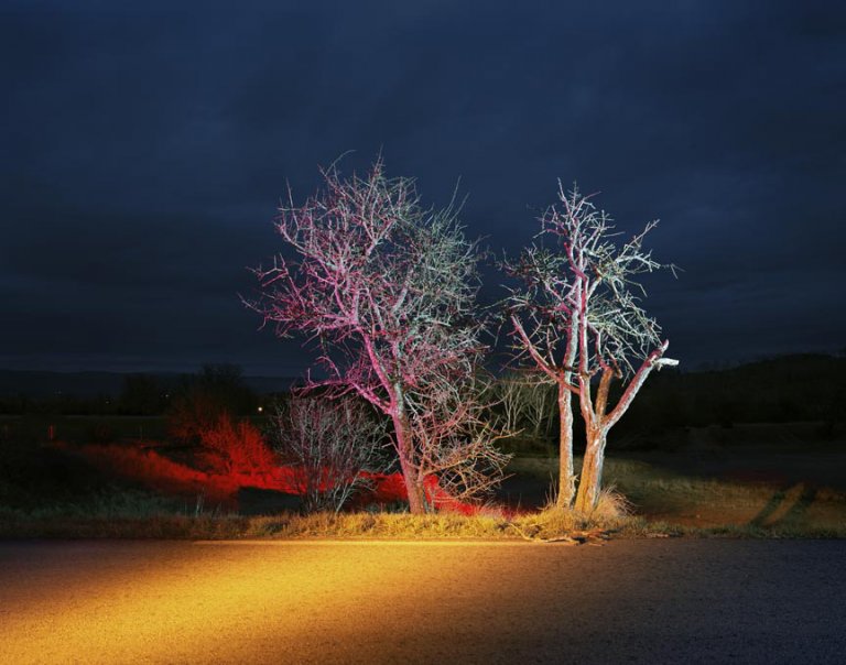 Route à la Campagne, avec Arbre. Soir. Au virage de la departementale qui relie Roussillon à Gargas, entre les Clos de l'Urbane et Les Bourgues, 2008, Fuji Crystal Archive Print, 88 x 110 cm