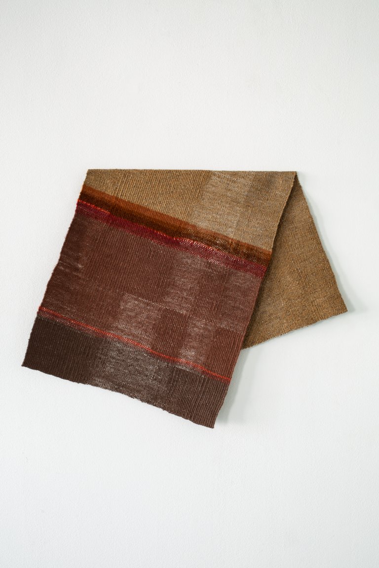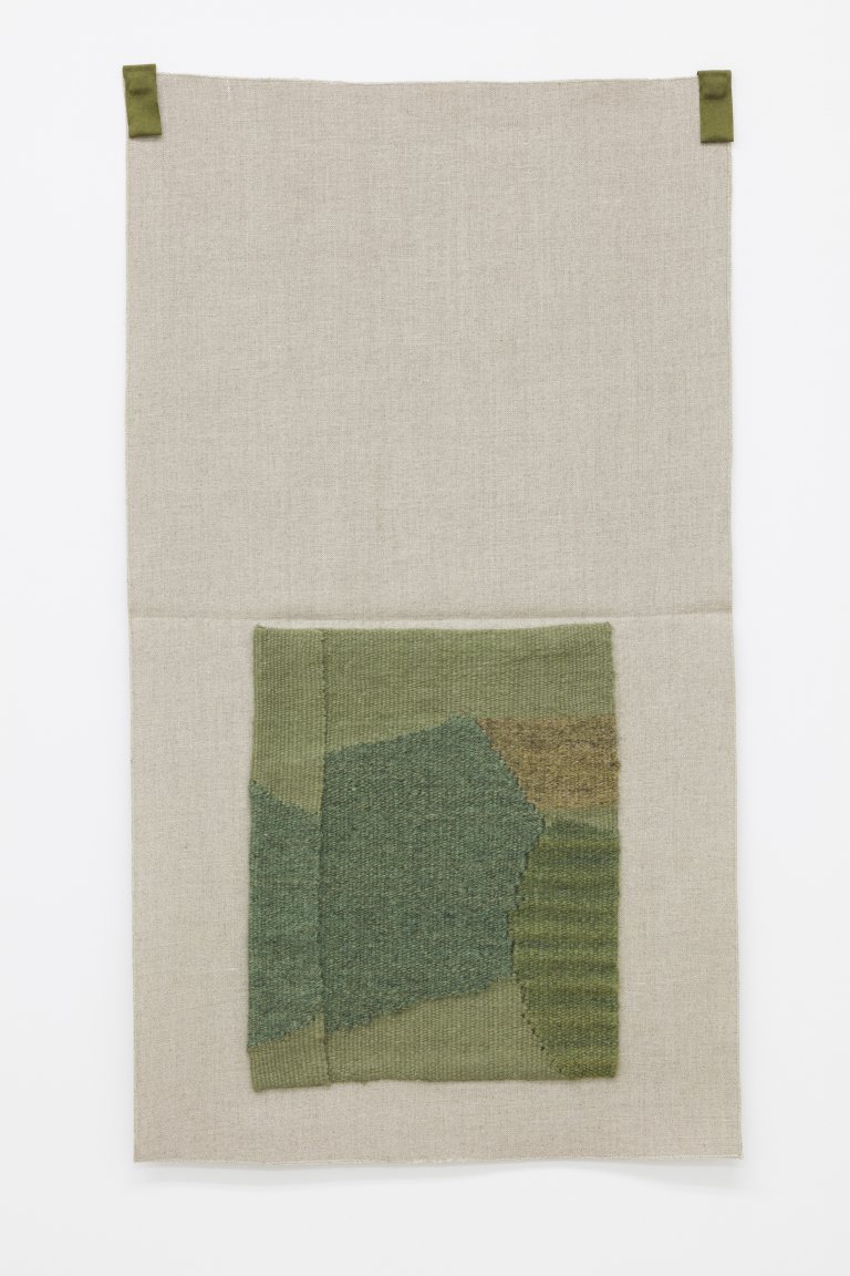 Grayish green, rhubarb-dyed blue-green, yellow-green, lichen-dyed light brown, 2015, linen and wool on linen, 70 x 39.5 cm