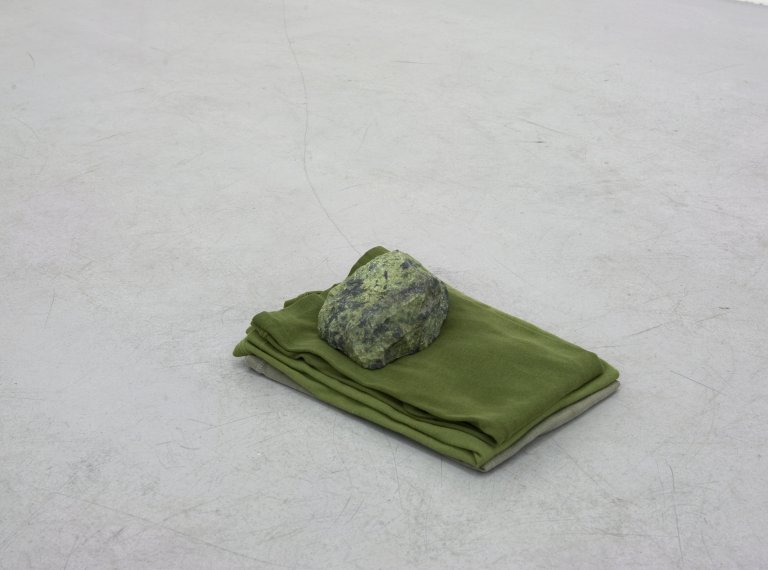 Metamorphosed, 2007, cotton (shirts), serpentinite rock with hematite, casein-painted magnesite and chlorite, 10 x 23 x 30 cm