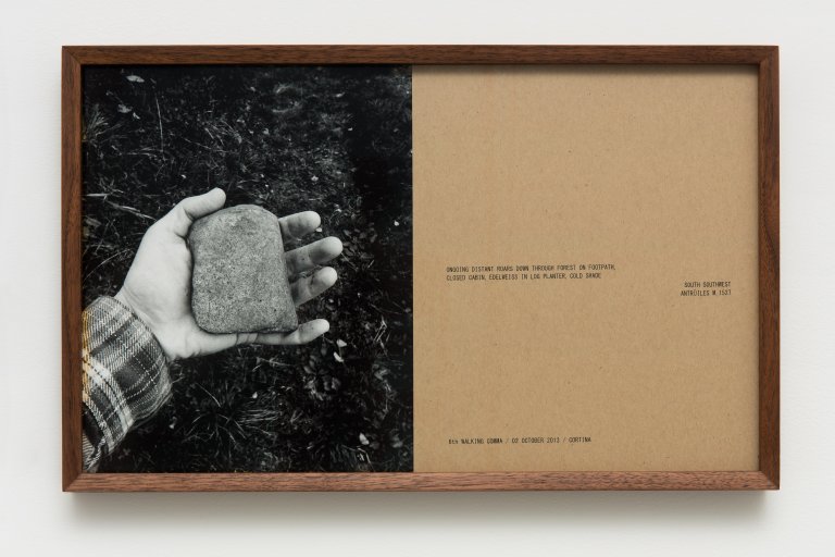 Walking comma, 02 October, Cortina, 2013, black and white photograph and text, framed, 28 x 43 cm