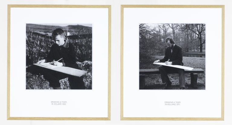Drawing a Tiger, 1971, black and white photograph, diptych framed, each 58 x 51,5 cm
