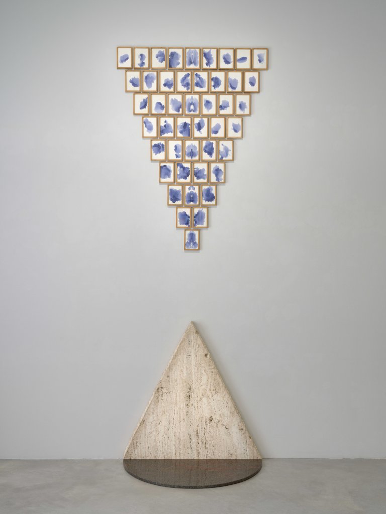 Untitled (Below and Above), 1983-1984, marble, granite and indian ink on paper, overall dim. installed 250 x 140 cm, on view at "To Catch a Fish with a Song: 1964–Today", Centre d’Art Contemporain Genève, Geneva, 2019