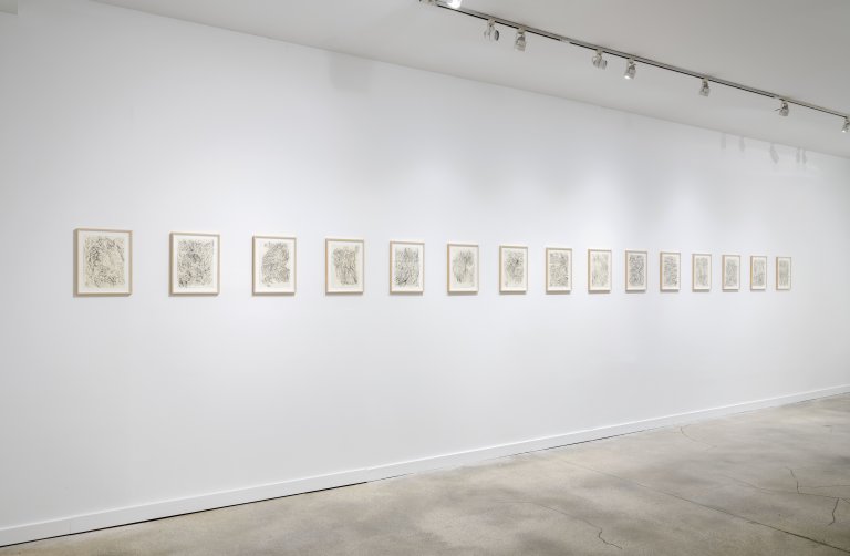 From Mont Sainte-Victoire, 1998, rubbing (graphite on paper), 15 drawings, each 29.3 x 21 cm, 38 x 28 cm framed. Photo: Oriol Tarridas