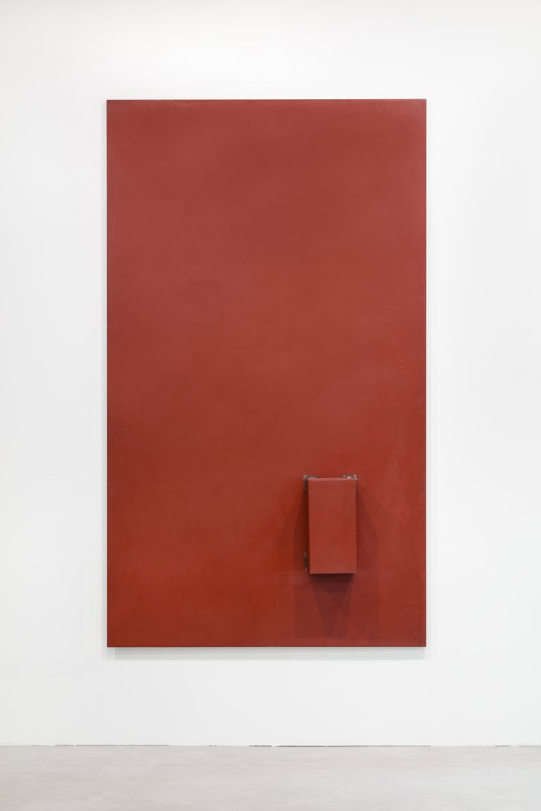 Untitled, 2008, steel, red lead primer (Bleimennige), primer, 2 parts (wall piece: 160 x 76 x 4 cm), floor piece: 131 x 73 x 89 cm