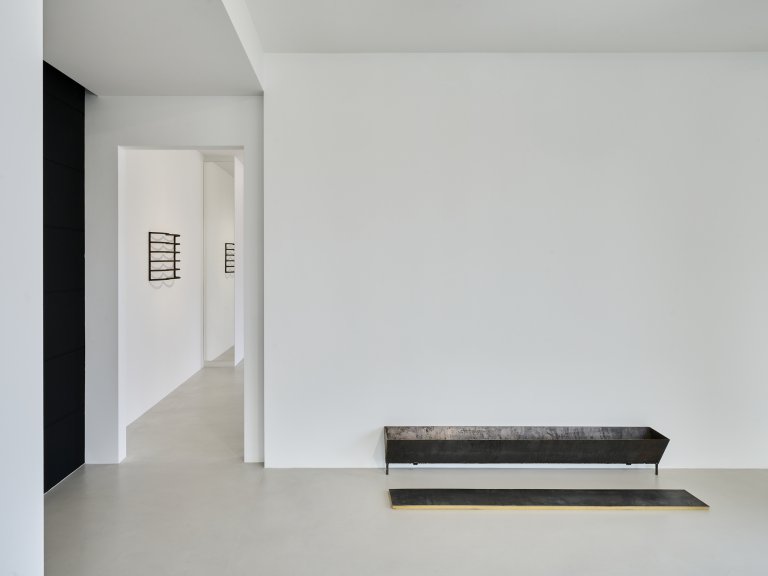 Installation view "Mirosław Bałka - 690 x 190 x 102", 2006, Galerie Nordenhake Berlin 2017, steel, wood, felt, 102 x 690 x 190 cm