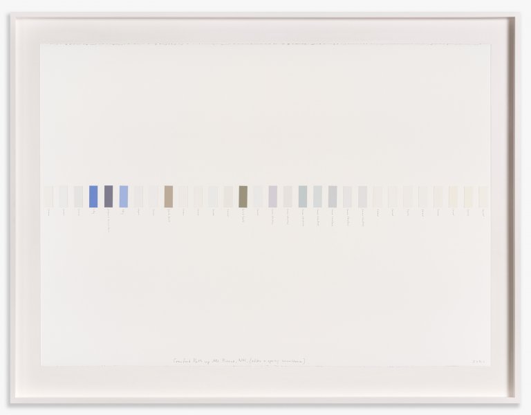 Crawford Path up Mt. Pierce, NH (after a spring snowstorm), 2021, Pantone swatches and pencil on paper, 74.9 x 104.8 cm, 29 1/2 x 41 1/4 in, framed 83 x 112.8 cm, 32 3/4 x 44 1/2 in