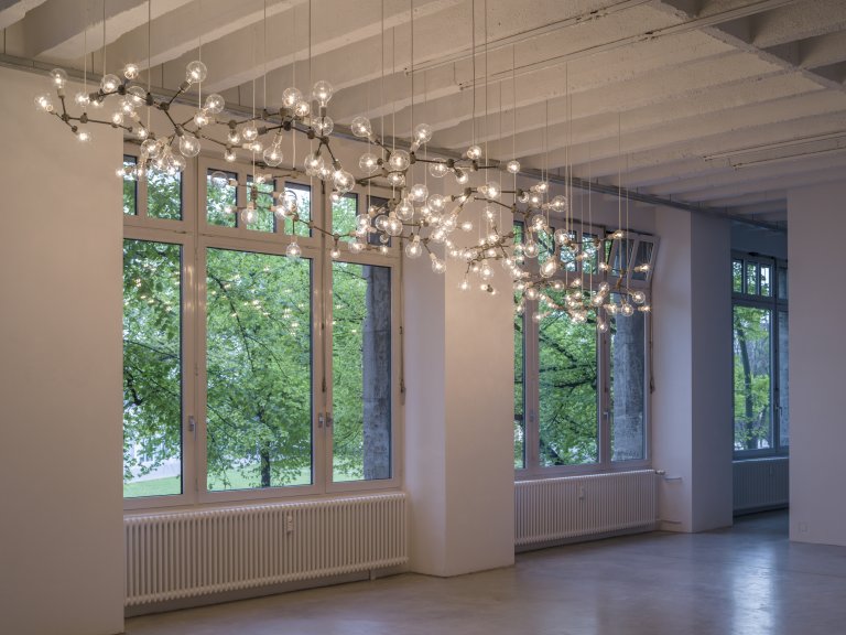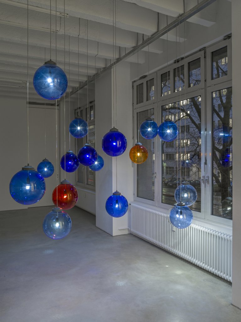 Orion, 2008, 17 hand painted glass globes, fixtures, LED-lights, overall dimensions: approx 151 x 300 x 300 cm, 59 1/2 x 118 1/8 x 118 1/8 in