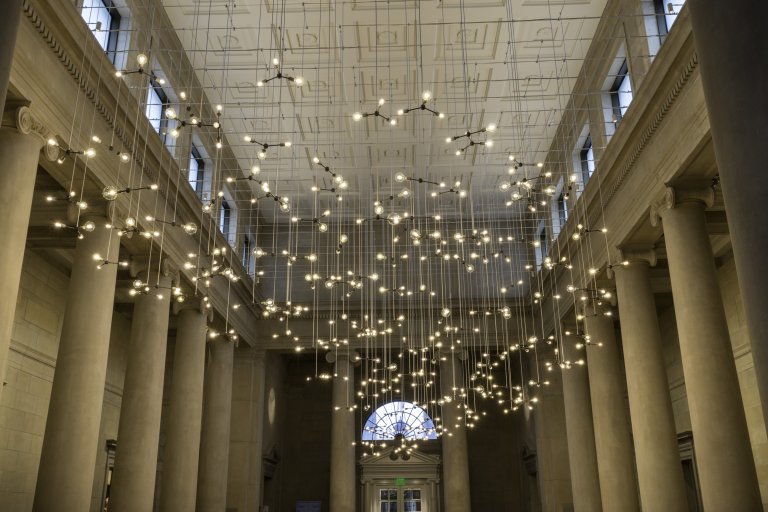 Installation view "Moon Dust (Apollo 17)", 2009, 150 light fixtures and 417 incandescent light bulbs, Variable dimensions, Baltimore Museum of Art 2017