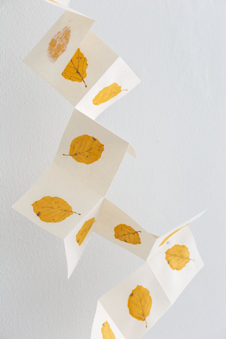 Falling Leaf (Beech), 2019, watercolor on folded paper, 4 x 4 cm each square