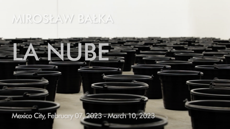 In his first exhibition with Galerie Nordenhake in Mexico, Mirosław Bałka presents the piece “La Nube”, an installation comprised of 650 black plastic buckets, each filled with a litre of water. The individual buckets recreate the void present in many of Bałka’s works and as a whole “La Nube” references the technology of cloud storage and its presence in and around us. Simultaneously another commission done exclusively for the exhibit will be installed in our showroom. “La Niebla” is concocted out of three vertical slabs of corrugated polycarbonate which together create a sense of blurriness and fogginess. The piece complements and establishes a dialogue with the much bigger and horizontal installation in the main space.