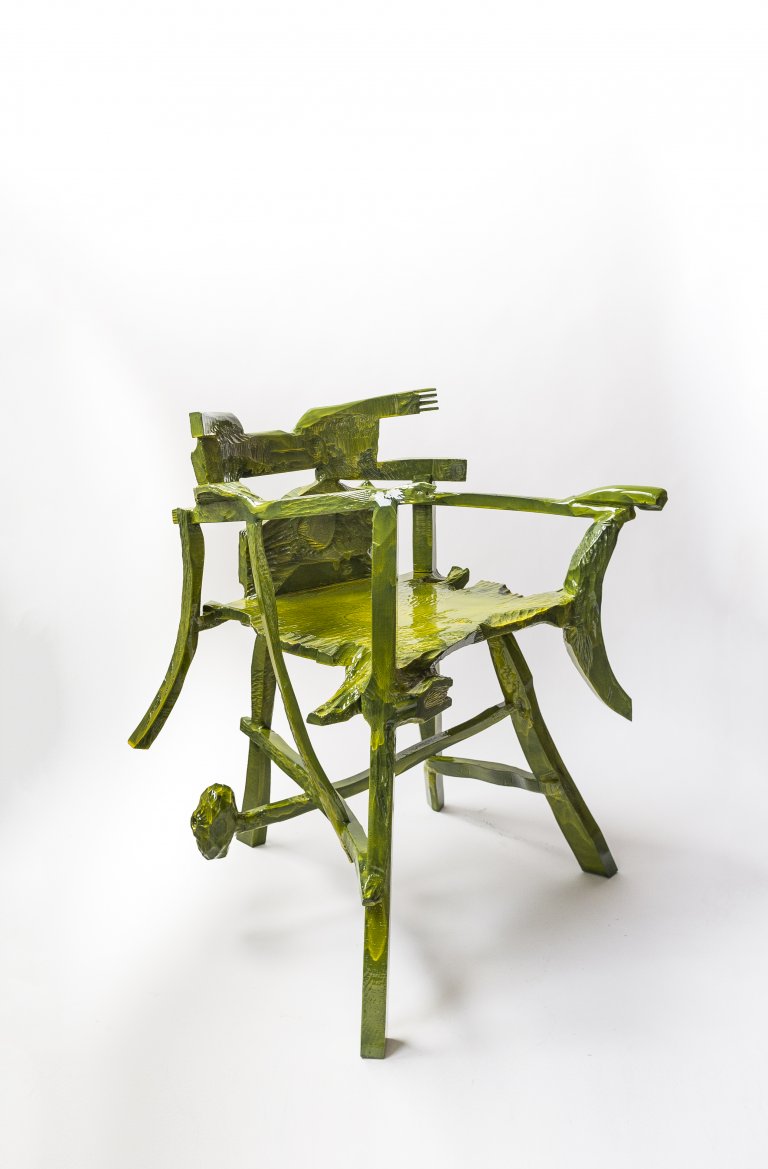 SNAKE-FACE-ARMCHAIR, wood, various and found, artist’s paint, linseed oil, varnish, 80 x 60 x 60 cm, 2025